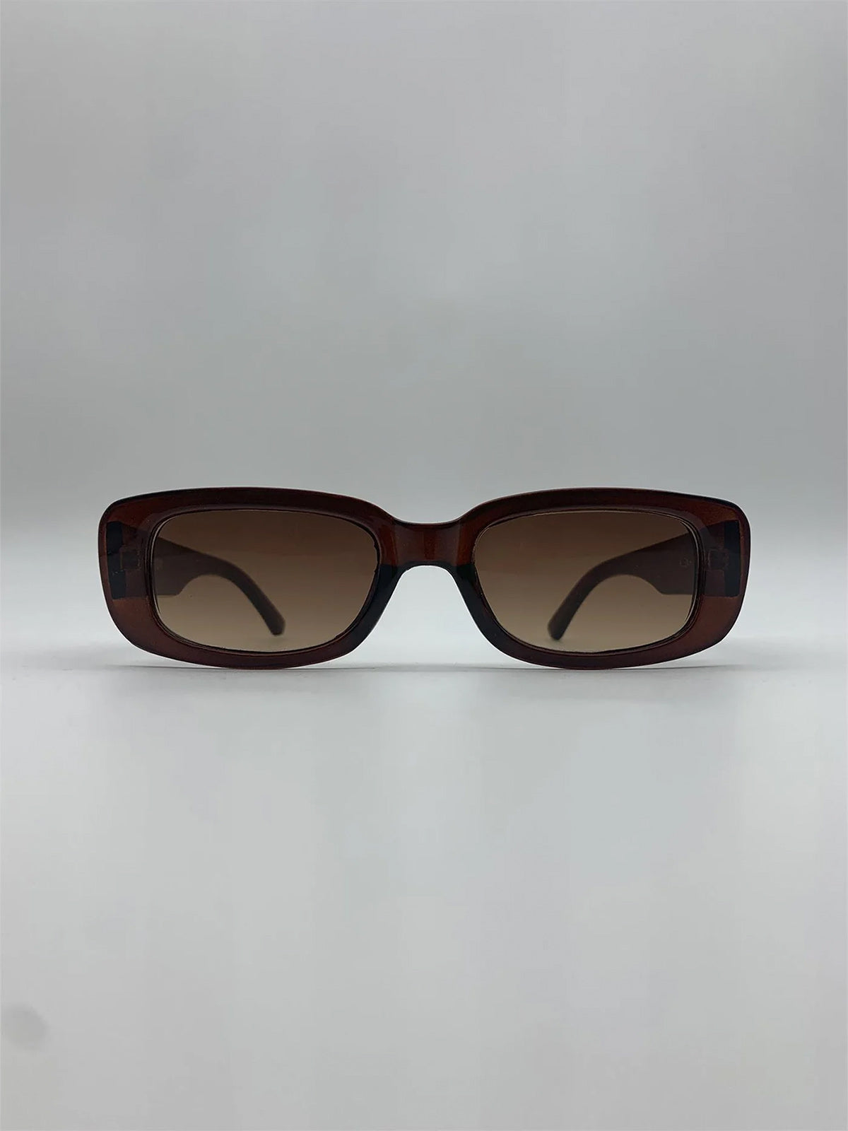 Stilig og smal solbrille fra DRØM med et fresht, urbant uttrykk. "Aleah" har klassiske, mørke polykarbonatlinser med 100 % UV400-beskyttelse – perfekt for solfylte dager.